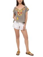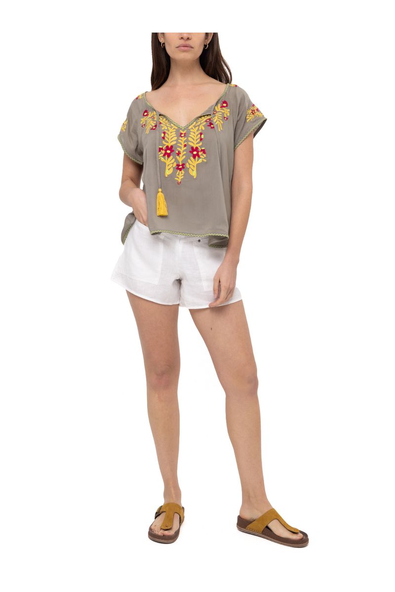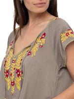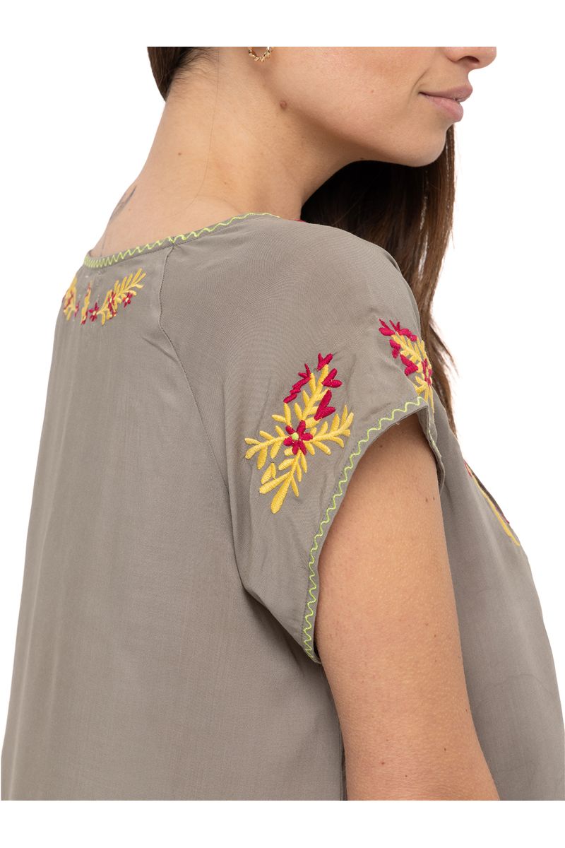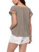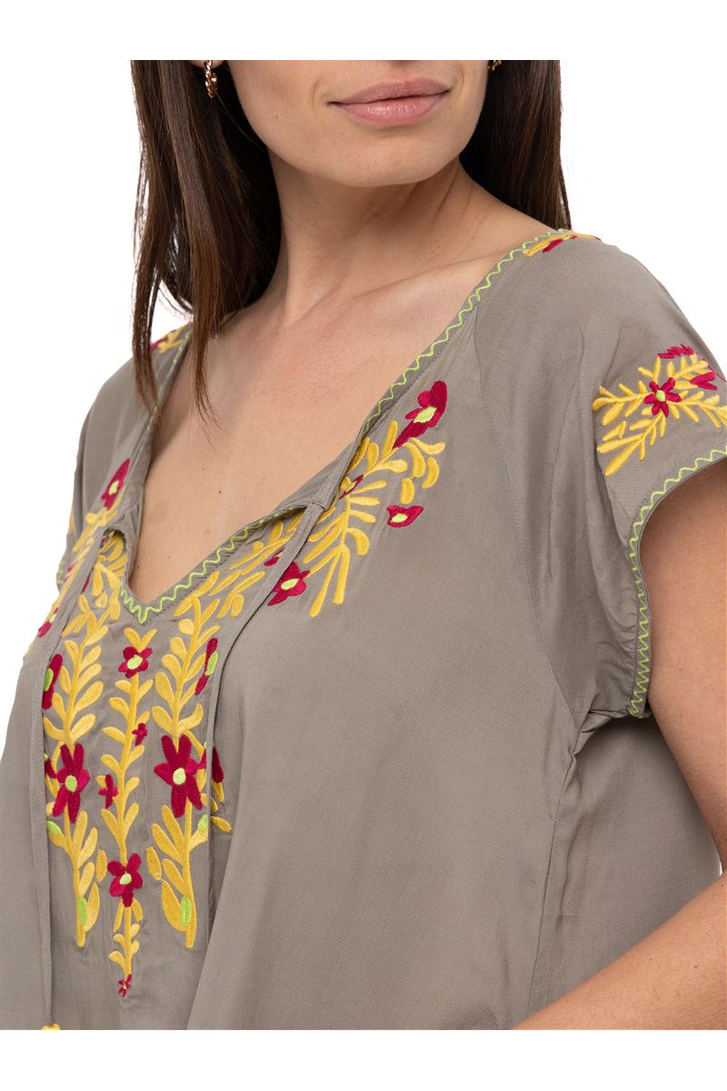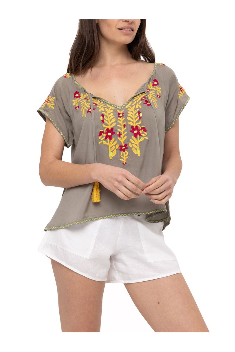Blusa ligera es perfecta para los días de calor, con un fit holgado que te permitirá moverte con comodidad. Sus diseños bordados inspirados en la flora de colores vibrantes te conectan directamente con la energía veraniega y te permiten expresar tu amor por la naturaleza. Hecha con materiales orgánicos los que te acompañarán en todas tus aventuras outdoor. ¡Lleva contigo la frescura y la vitalidad del verano con esta hermosa blusa!