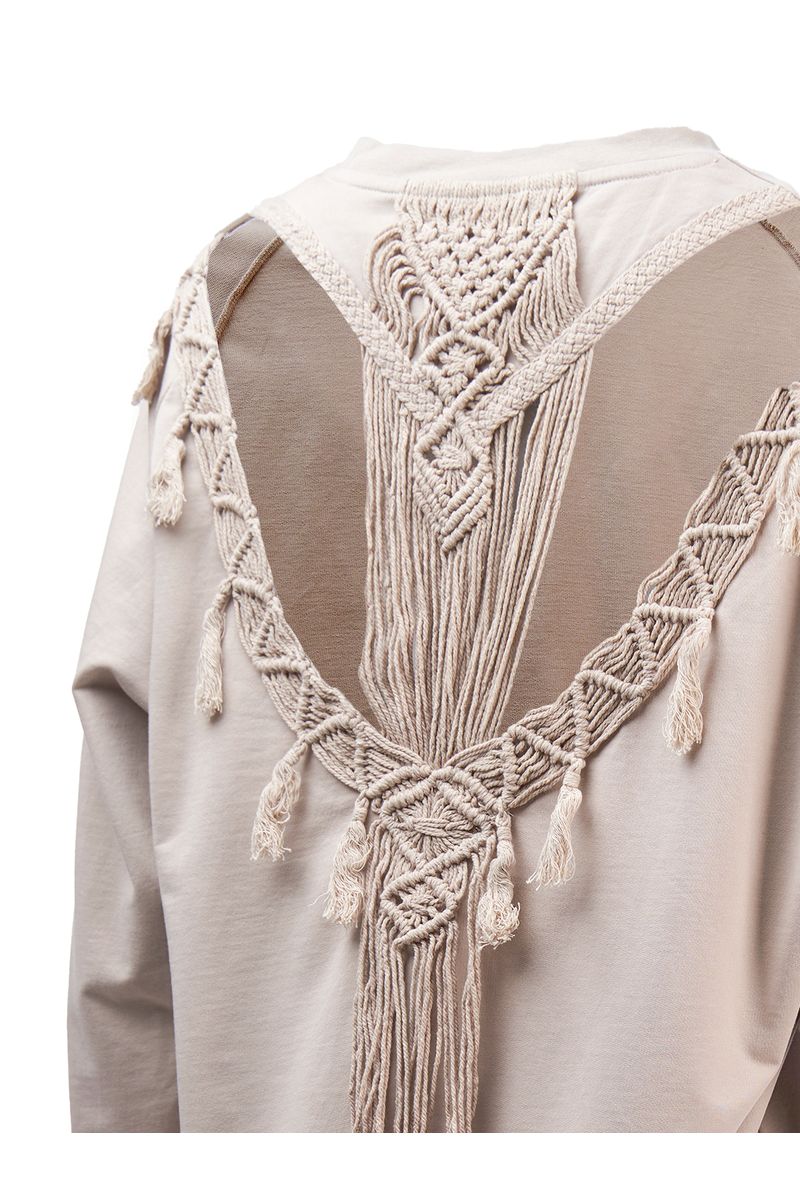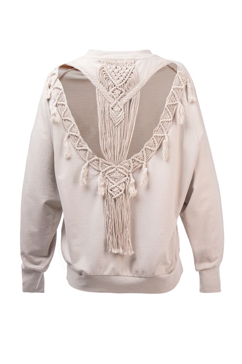 Saco de algodón orgánico, suave al tacto, con cuello redondo y un fit regular que brinda comodidad. El detalle de apertura en la espalda con detalles de crochet lo convierte en una prenda elegante y única. Sostenible y duradero, esteSaco refleja nuestra pasión por la moda y la naturaleza. Perfecto para tus aventuras al aire libre o para una ocasión especial, demuestra tu compromiso con el medio ambiente con estilo.